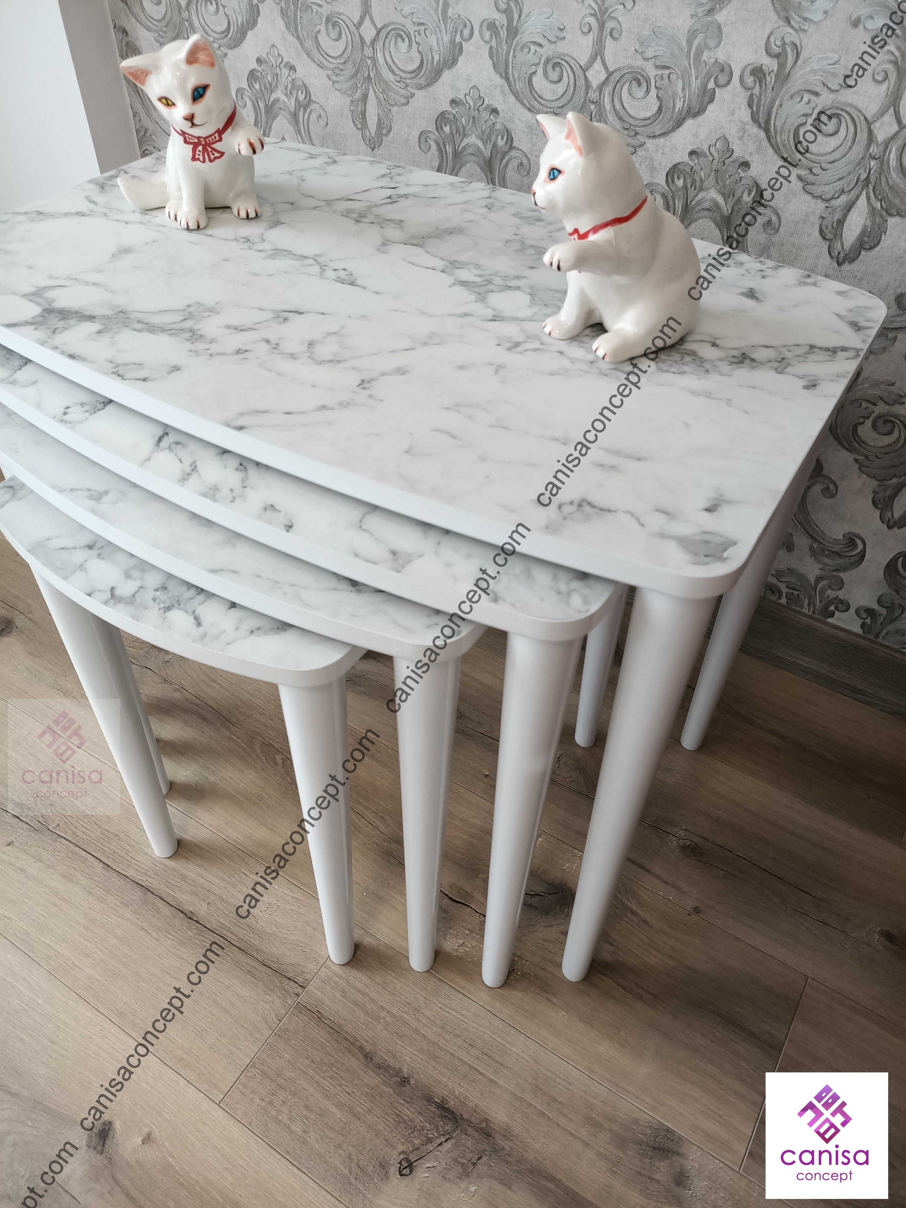 Ne renk ne kalite ne de ölçüleri. Aynı tasarıma sahip fakat metal ayakları, nikel kaplama olan modelleri farklı fiyat aralıklarında bulabilirsiniz. 3'lü veya 4'lü zigon sehpalar orta sehpanın dışında yan sehpalarında bulunduğu bir takım oluştururken, orta sehpa daha çok dekoratif amaçlı kullanılıyor.